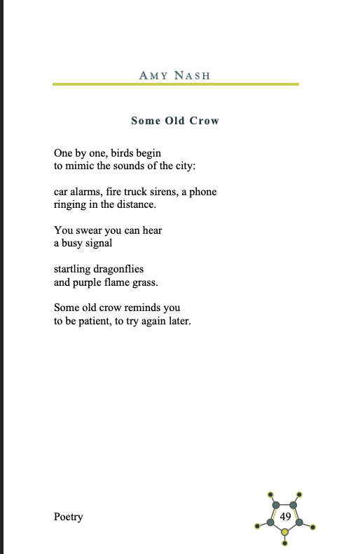 I am honored to have my poem “Some Old Crow” published in the Spring 2026 issue of Molecule. Happy Spring!
